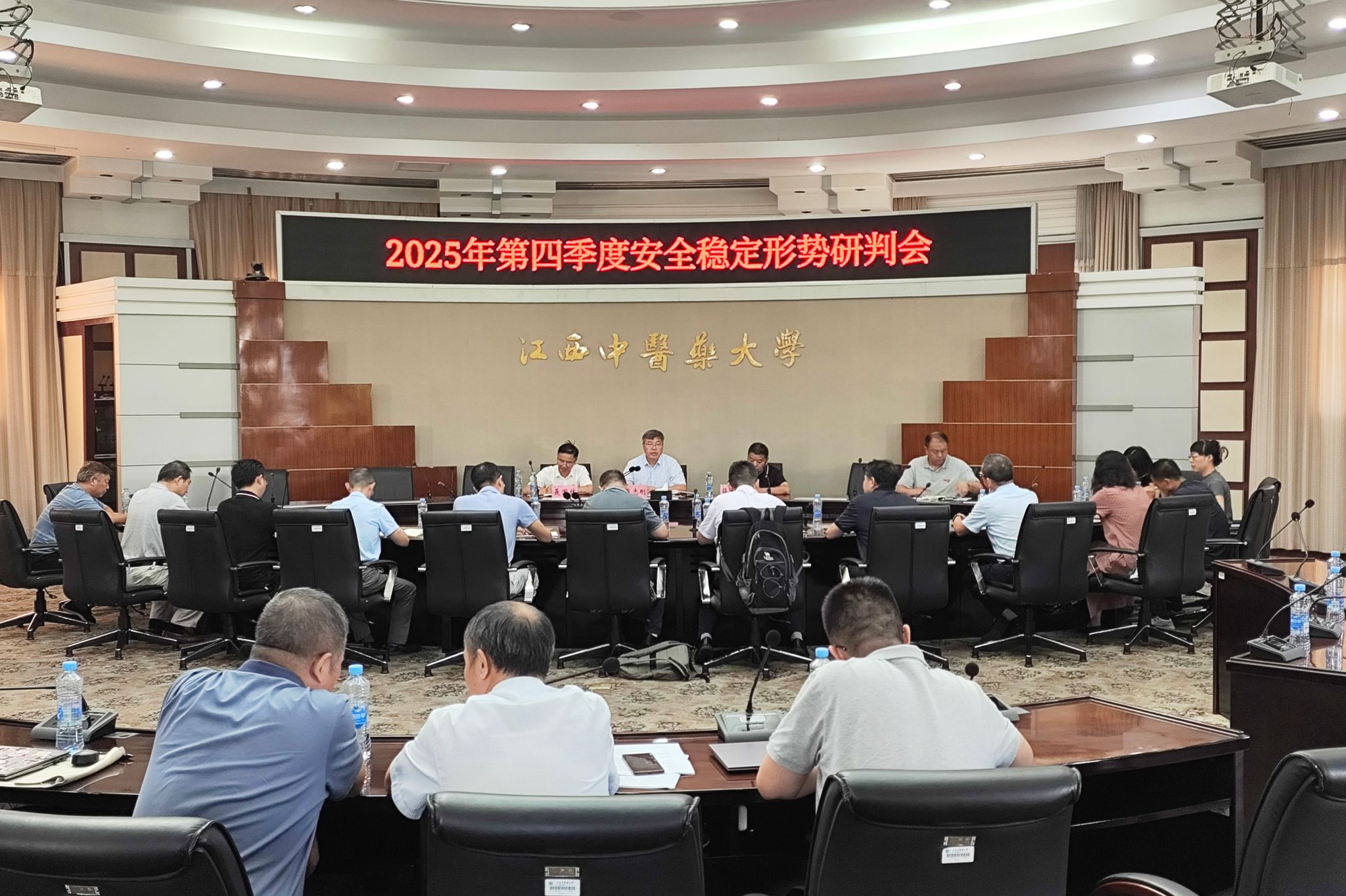 江中新闻网讯(通讯员 李春帅)为深入贯彻落实全省学校安全稳定工作部署,扎实做好国庆中秋假期及第四季度校园安全保障工作,9月26日,我校在行政楼多功能会议室召开2025年第四季度安全稳定形势研判会。党委委员、副校长周志刚出席会议并讲话,党委委员聂国林、薛铁瑛出席会议,各职能部门、教学院部负责人参加会议。