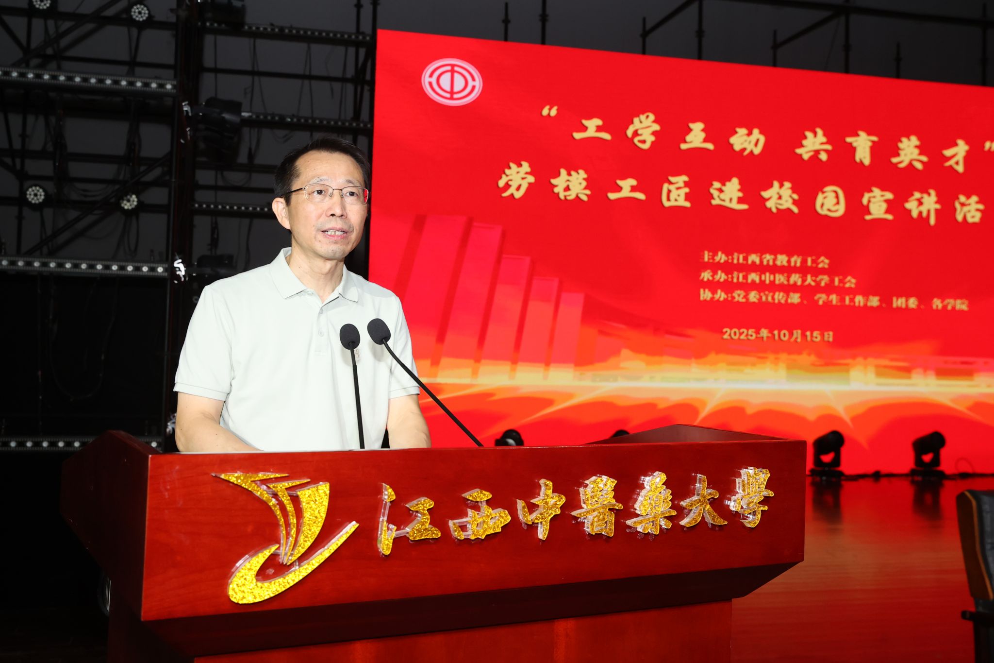 江中新闻网讯(记者 余浩)10月15日,学校在湾里校区神曲厅开展“工学互动 共育英才”赣鄱劳模工匠进校园宣讲活动,特邀“全国五一劳动奖章”获得者、南昌大学生命科学学院杨柏云教授来校作宣讲报告。活动由省教育工会主办,校工会承办,党委宣传部、学工部、团委以及各学院协办。学校党委副书记章德林出席活动并讲话,学校教师代表、学生代表以及相关职能部门干部、学校各分工会主席1200余人参加活动。