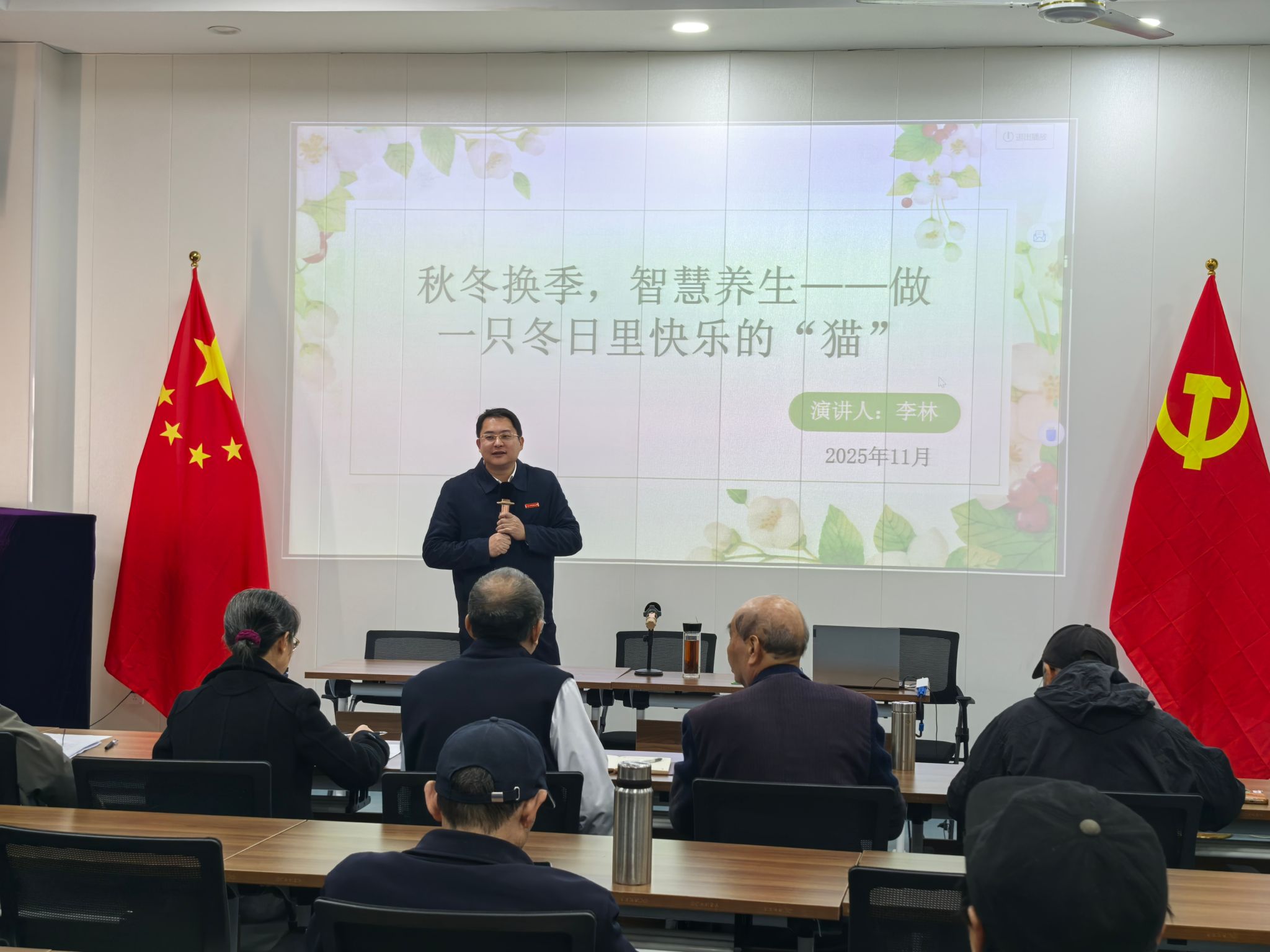本期健康讲座题为《秋冬换季,智慧养生—做一只冬日里快乐的“猫”》,由第二附属医院李林教授主讲。他从老年人换季时的生理变化和病理变化、换季时的中西医常用药物和用药相关注意事项、老年人换季健康养生指导等方面展开讲解,帮助老同志理解季节变化对身体的影响,掌握实用的药物调理和情致保健。他带领与会老同志一起学习了和一些居家运动方法,一边细致演示,一边讲解其养生原理和操作要点。现场老同志纷纷起身,跟随模仿,互动积极,学习热情高涨。