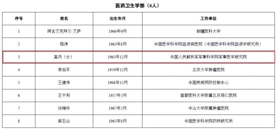 高月,中国工程院院士,军事药学和中药药理学专家,专业技术少将军衔,国家岐黄学者首席科学家、国家中医药交叉创新团队带头人、中国医学科学院学部委员。现为全军特需中药及天然药物研究重点实验室主任、军队特殊环境智能中医药研究实验室主任。兼任中国中西医结合学会临床药理与毒理专业委员会主任委员等职。先后主持国家自然科学基金重大专项、国家重点研发计划等各类课题23项。以第一完成人获得国家科学技术进步奖一等奖、国家科学技术进步奖二等奖、军队科学技术进步奖一等奖等6项,获军队特需药品新药证书3项,生产批件4项;以通讯作者在NC、STTT、APSB等发表SCI论文150篇;荣获何梁何利基金科学与技术进步奖、首批全国创新争先奖、全国中医药杰出贡献奖、第十届树兰医学奖、吴阶平医药创新奖等。荣立个人二等功2次、三等功1次。