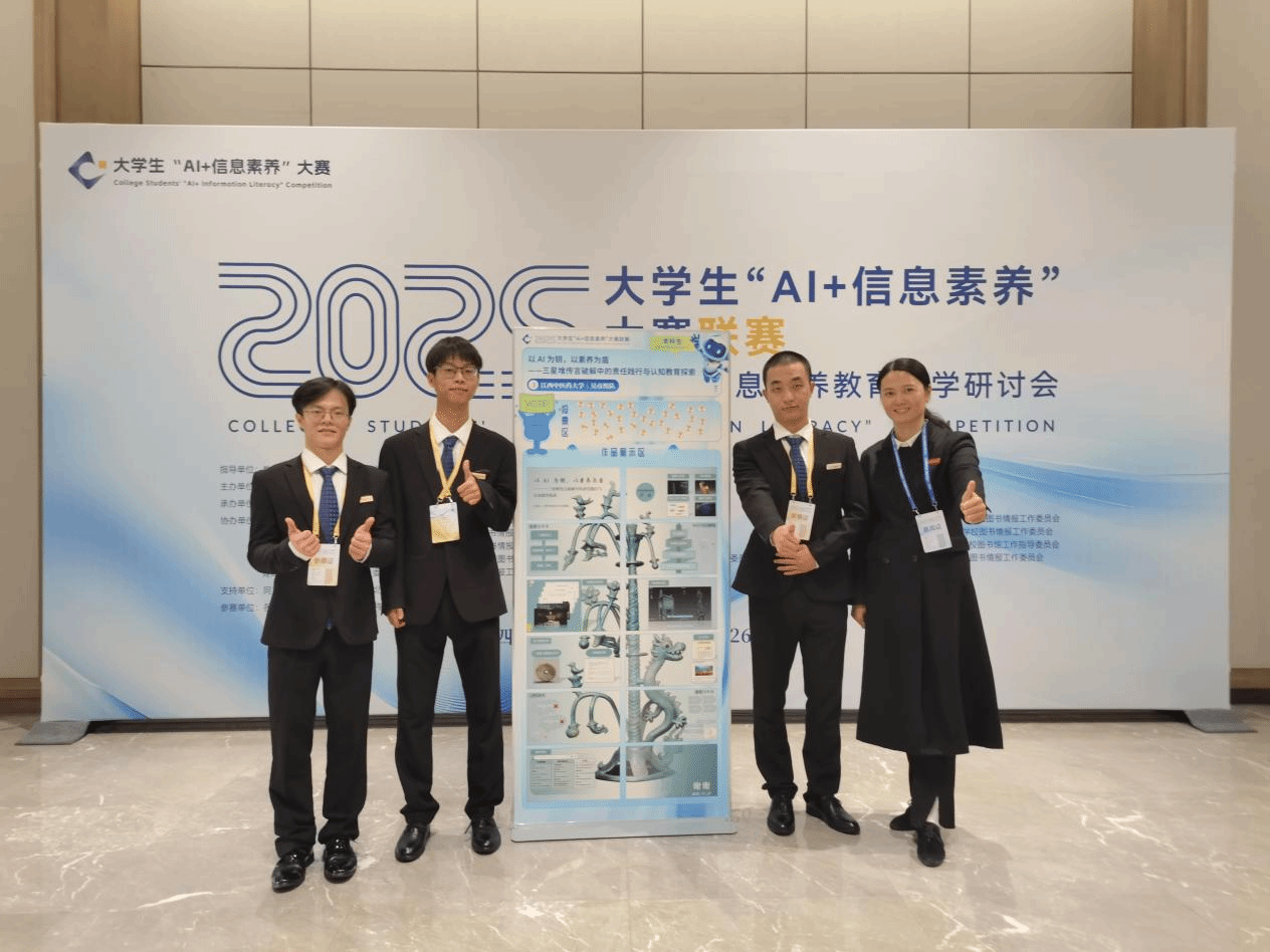 以素养育人才,以竞赛验成效。作为学校信息素养教育的主阵地,图书馆始终将提升学生信息处理、分析、创新能力作为核心育人任务,针对AI时代对人才素养的新要求,构建了“课程教学+实践训练+竞赛赋能+资源支撑”四位一体的信息素养教育体系。此次参赛是图书馆深化信息素养教育、落实“弘扬教育家精神”要求的生动实践。下一步,图书馆将不断创新信息素养教育模式,进一步提升学子在AI时代的信息检索、分析、应用与创新能力,为培养高素质复合型人才、助力学校高质量发展作出更大贡献。