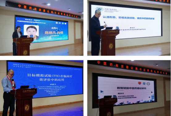 主旨演讲环节,行业领军专家们分享前沿成果,带来一场精彩的学术盛宴。中国中医科学院西苑医院首席研究员唐旭东以“珍视名医学术经验做优创新中药研发”为题,提出构建“中医理论-人用经验-临床试验”三结合证据体系,挖掘经典名方与名医验方的创新潜力。北京中医药大学刘建平教授聚焦“目标模拟试验设计及应用案例”,详解了目标模拟试验(TTE)在中医药临床疗效评价中的独特价值,指出其可弥补随机对照试验(RCT)的局限。北京中医药大学东方医院院长商洪才围绕“数智赋能中医药循证研究”,探讨大数据、人工智能等技术在中医药循证研究中的创新应用,推动中医药研究向精准化、智能化迈进。