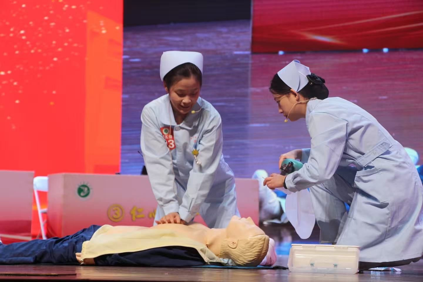 本次护理技能大赛分预赛与决赛两个阶段,预赛综合成绩前24名的学生组成6支代表队晋级决赛。决赛环节包括知识竞赛和双人心肺复苏综合情景案例两大模块,其中,知识竞赛又分为“有问必答”必答题、“当机立断”抢答题、“险中求胜”风险题三个层层递进的环节。经过激烈的比拼,大赛最终评选出团体一等奖1项、二等奖2项、三等奖3项,为本次赛事画上了圆满的句号。