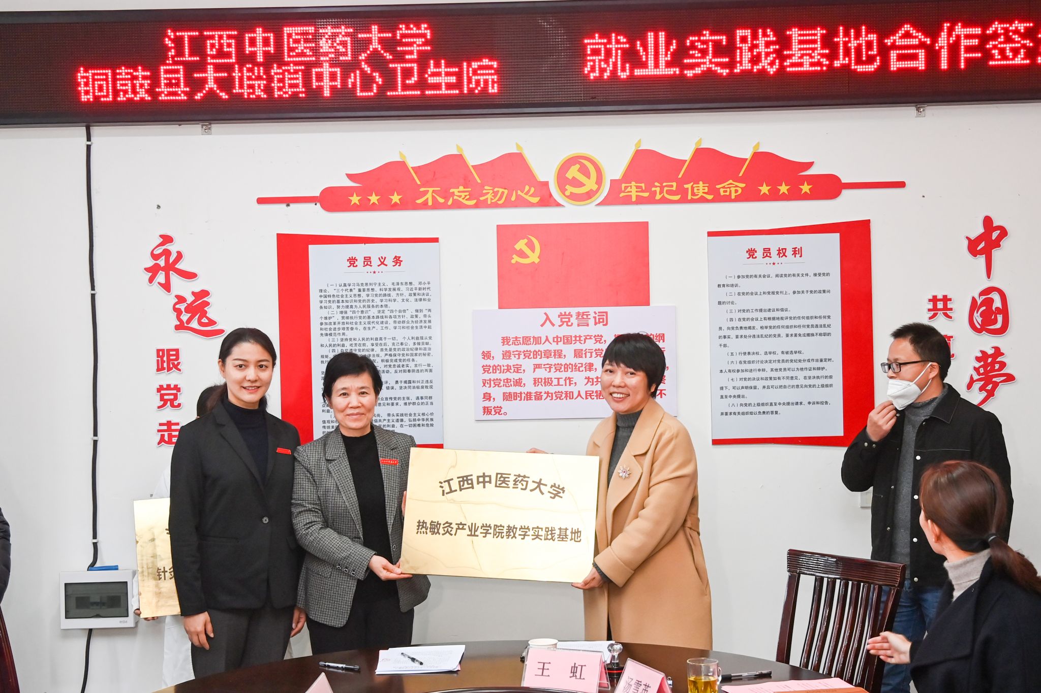会上,针灸推拿学院与铜鼓县大塅镇中心卫生院签署了《江西中医药大学热敏灸产业学院与大塅镇中心卫生院共建教学实践基地合作协议》《江西中医药大学针灸推拿学院与大塅镇中心卫生院共建就业实践基地合作协议》。
