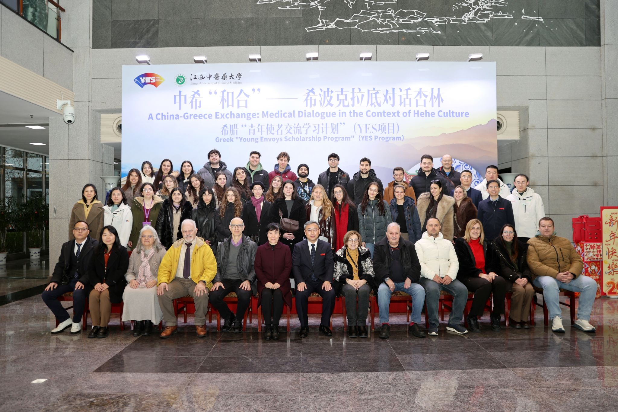 江中新闻网讯(通讯员 张海萍)2月11日下午,希腊“青年使者交流学习计划”(YES项目)结营仪式在南昌举行。39名来自希腊帕特雷大学及国际希腊大学的师生圆满完成以中医药为特色的文化研习之旅,带着满满收获与不舍,与我校师生依依惜别。学校国际教育学院负责人、希中教育文化协会负责人、学校国际教育学院教师及在校国际学生共同参与活动。