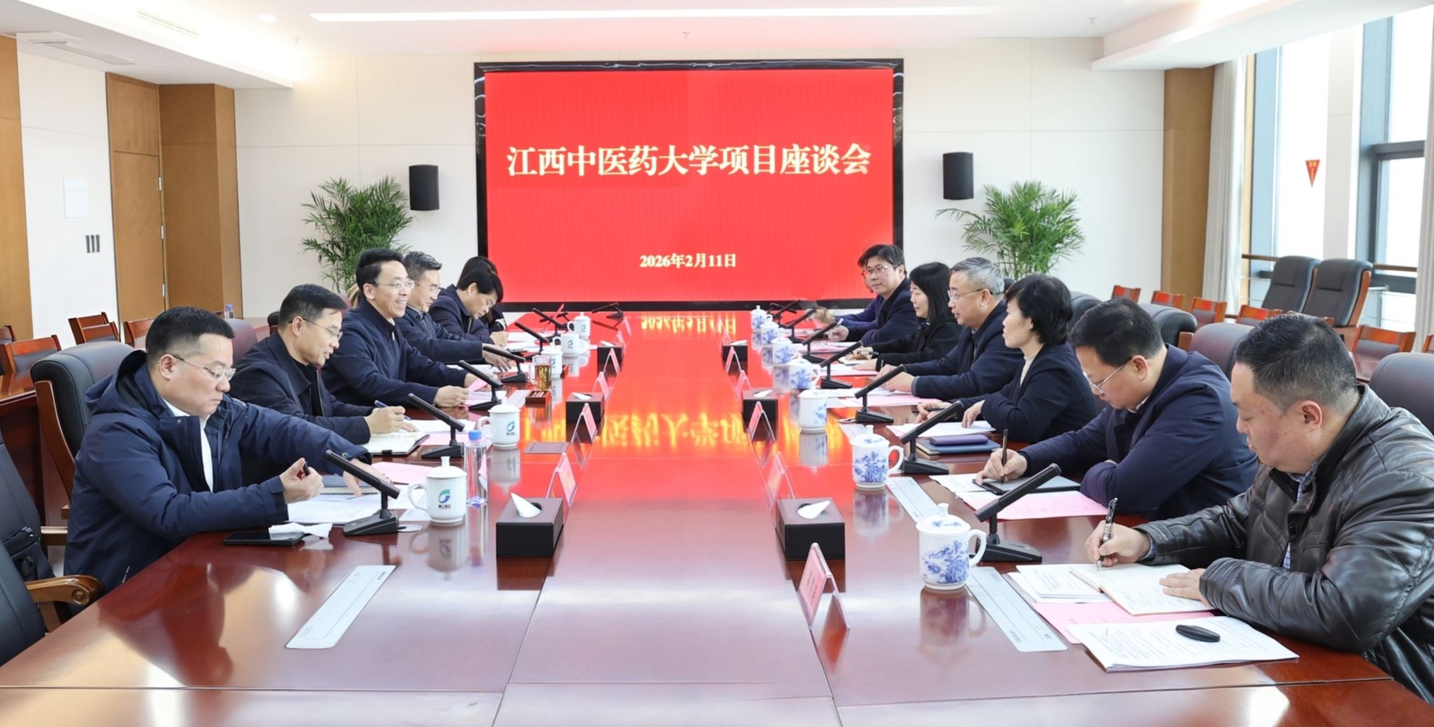 王万征感谢江西中医药大学对赣江新区工作的支持。他表示,当前赣江新区正按照“盘活资源、完善配套、做强产业、聚集人气”的思路,聚焦生命健康产业,进一步推进建链、补链、延链、强链,持续汇聚高端创新资源。江西中医药大学办学底蕴深厚、学科特色鲜明、科研实力强劲,研究方向与创新成果高度契合新区产业发展需求,双方合作潜力巨大、前景广阔。希望学校进一步发挥平台、资源、人才等优势,深化产业发展、科学研究、人才培养等领域的合作,推动合作项目落地见效。新区将不断创新合作模式、强化服务保障,在物理空间、设备、算力、新药研发等方面给予全力支持,推动双方合作向更深层次、更高质量迈进,实现互利共赢。