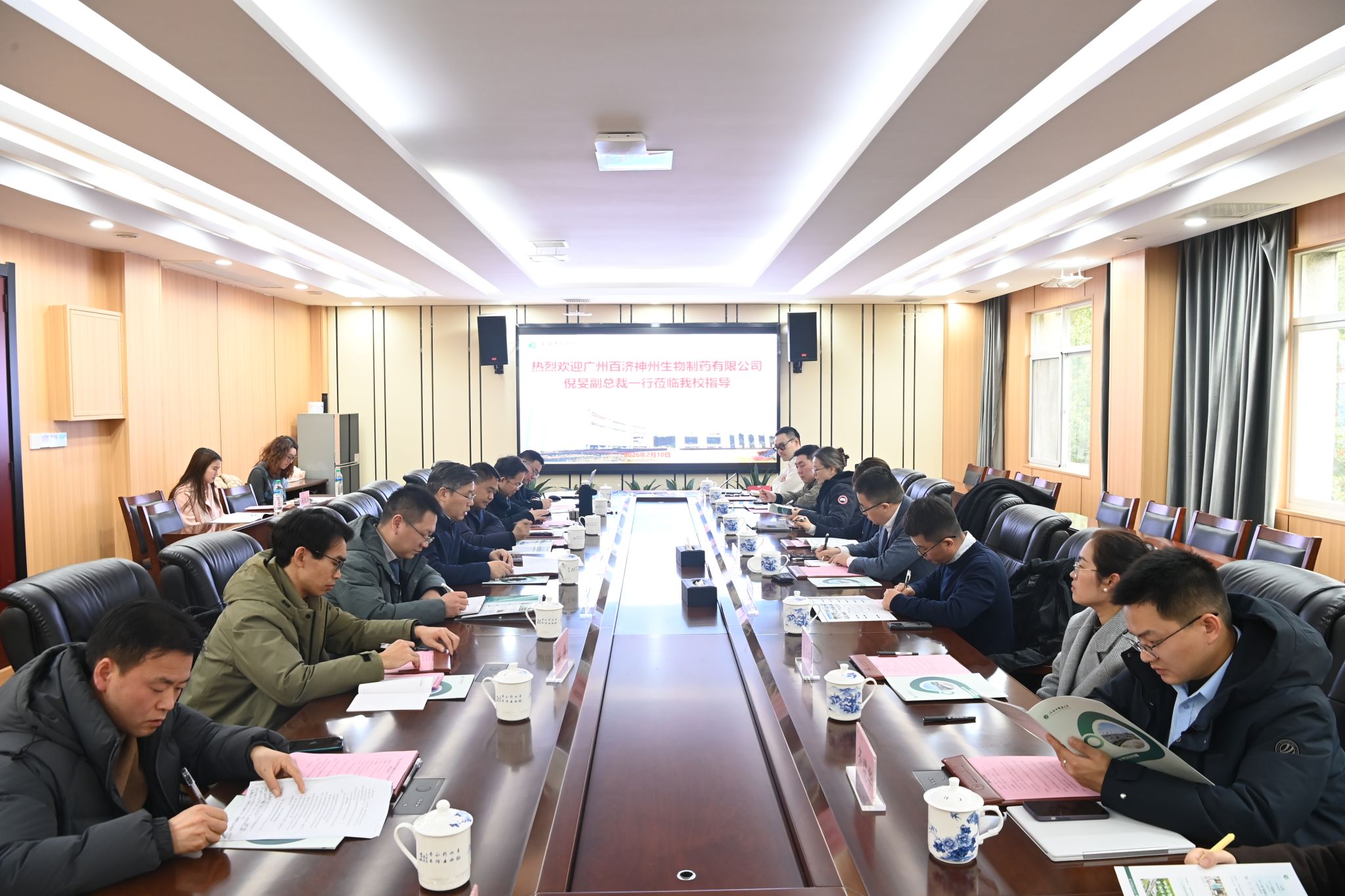 江中新闻网讯(通讯员 曹森)2月10日,广州百济神州生物制药有限公司副总裁倪旻一行到校考察交流,学校党委委员、副校长周志刚出席座谈会并讲话,招生就业处、教务处、研究生院、药学院、针灸推拿学院、健康经济与管理学院等部门负责同志参会。