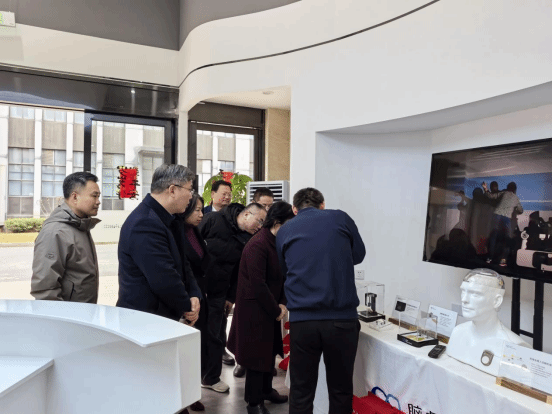 调研团首站走进江西脑虎科技,深入了解这家植入式脑机接口领域先锋企业的柔性电极、微创植入技术等核心研发成果,重点考察其在脊髓损伤患者康复等方面的临床应用探索。在江西杰联医疗,调研团现场体验无创监测与干预设备,与技术团队围绕设备临床应用、数据算法优化等问题深入交流,了解企业在无创脑机接口领域的技术突破。