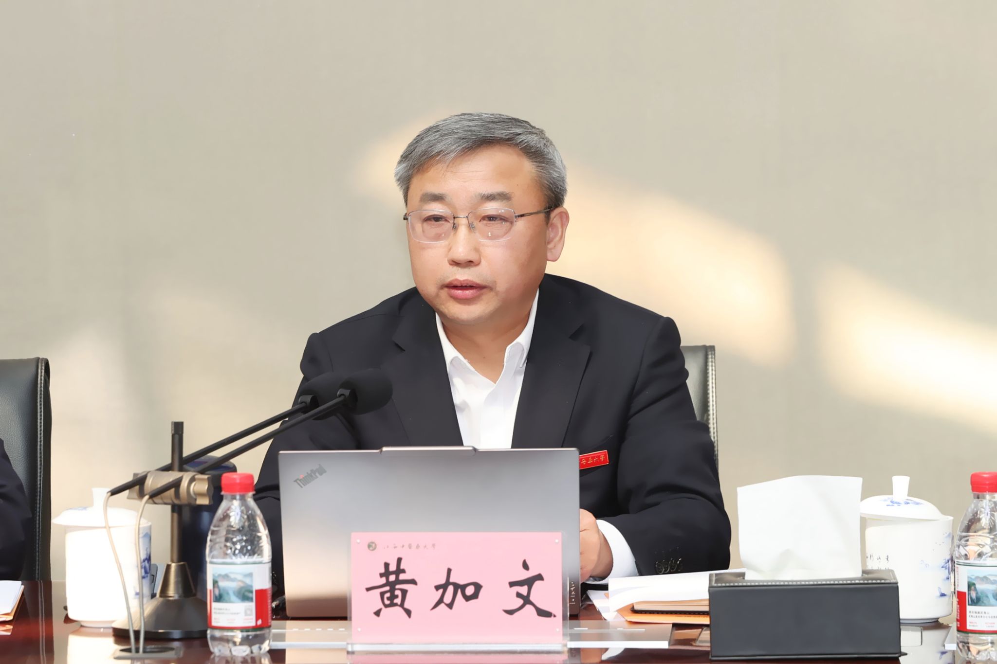 围绕深刻领悟习近平总书记重要讲话精神,准确把握全面从严治党的新部署新要求,黄加文强调,要深刻领悟“更加坚决有力地贯彻落实党中央重大决策部署”的根本要求,确保党中央决策部署在学校落地生根。要深刻领悟“更加科学有效地把权力关进制度笼子”的战略考量,切实把制度优势转化为学校高质量发展的治理效能。要深刻领悟“更加清醒坚定地推进反腐败斗争”的重要部署,以优良党风正校风、促教风、带学风。