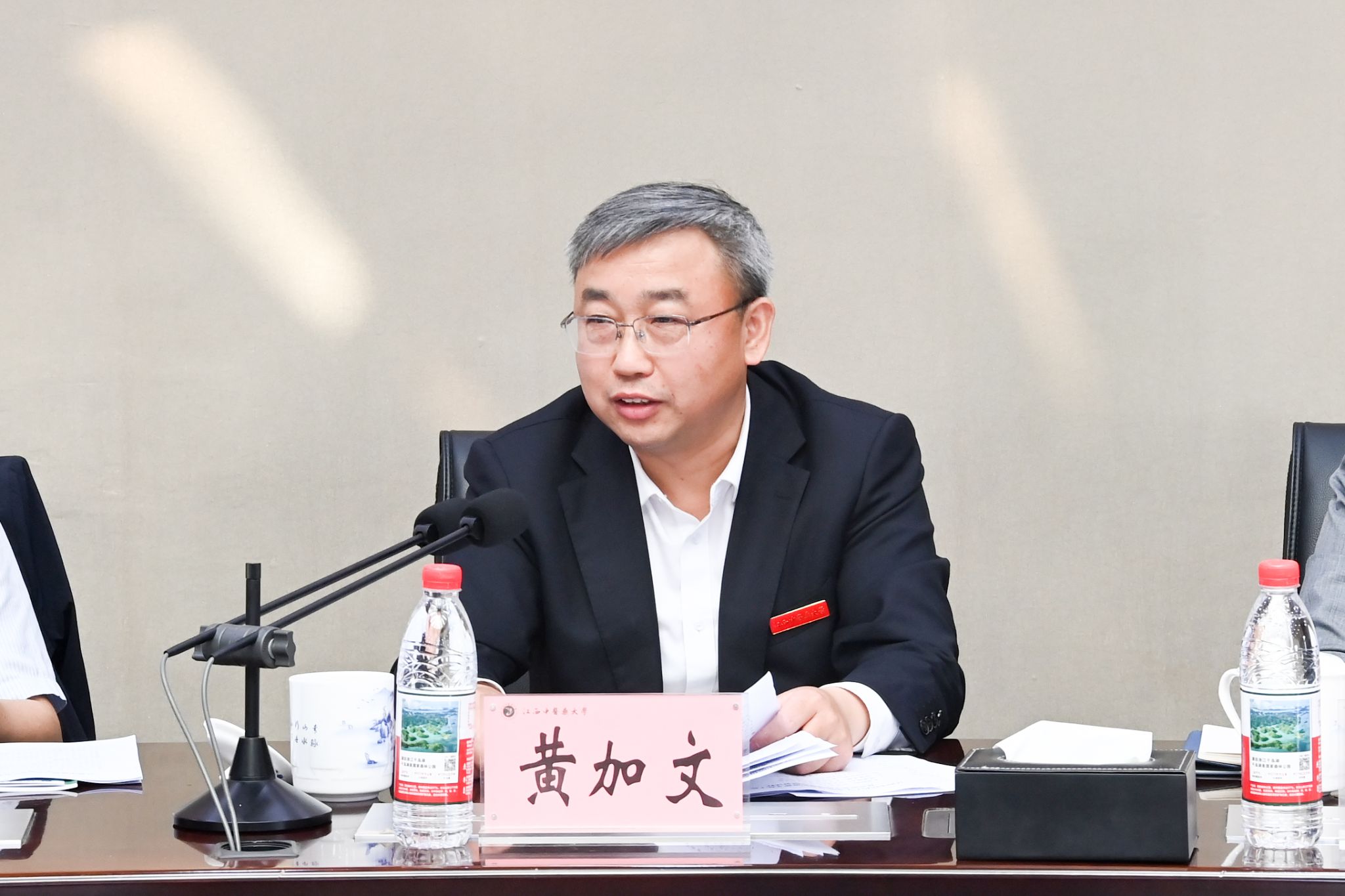 江中新闻网讯(记者 杨清跃)4月10日,学校召开2026年宣传思想文化工作、意识形态工作领导小组会,党委书记黄加文主持会议并总结讲话。校领导朱卫丰、刘潜、邹健生、陈焕文、严小军、周志刚、钟凌云,党委委员聂国林、薛铁瑛、徐道富、周小青出席会议,各基层党组织书记、相关职能部门负责人、思政课教师代表参加会议。