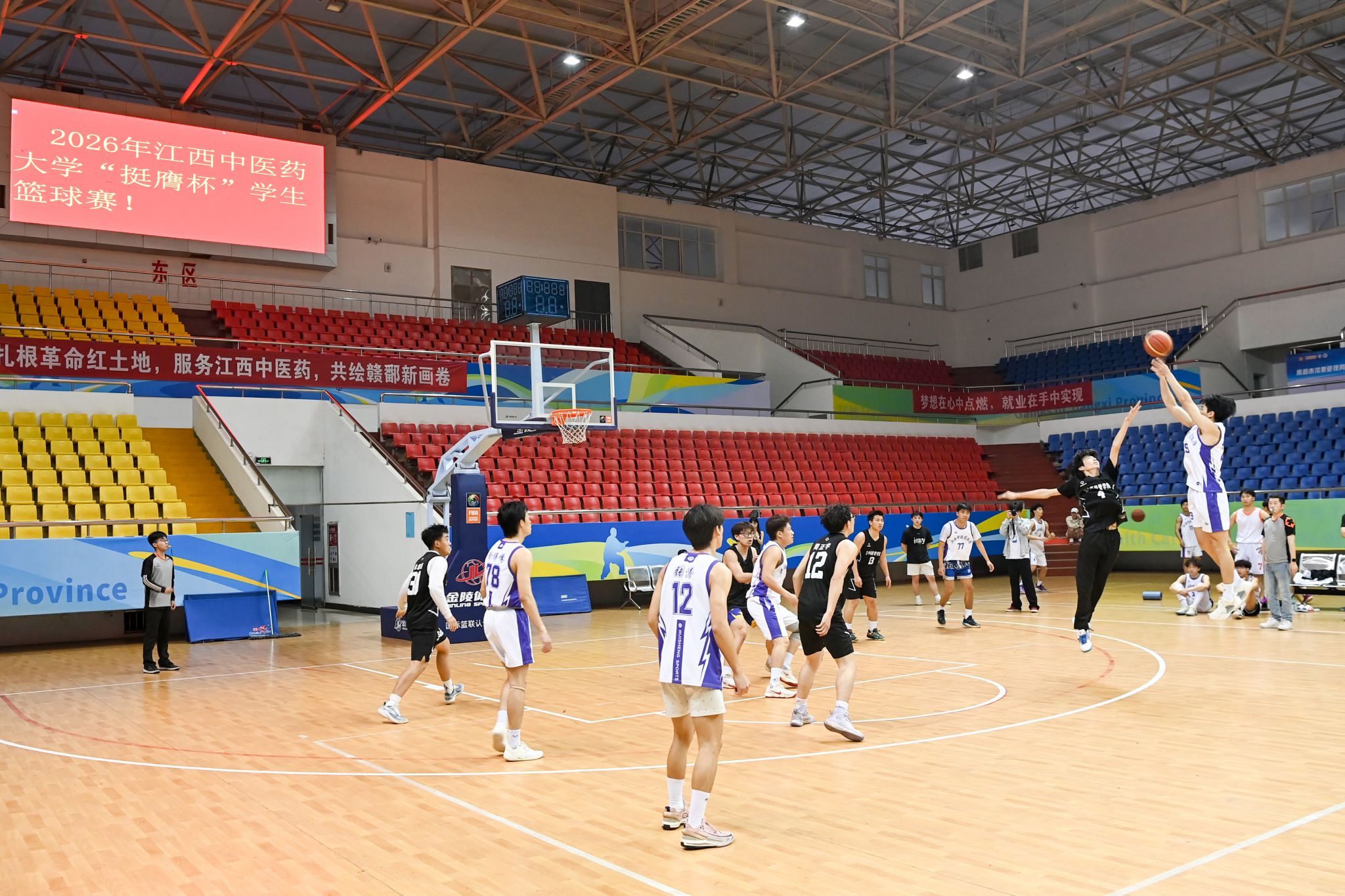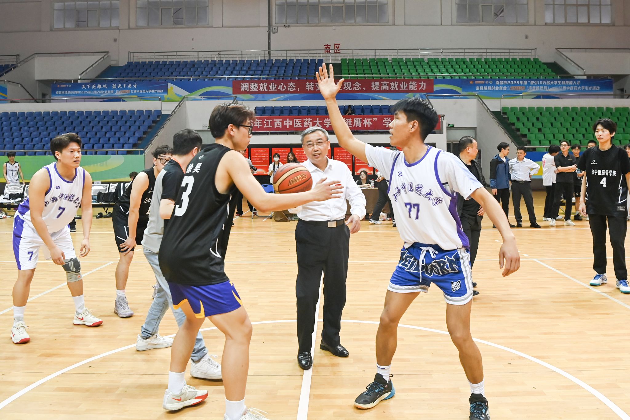 江中新闻网讯(通讯员 李云 记者 杨清跃)4月10日,由校体育运动委员会主办,体育健康学院、学生工作处承办的2026年江西中医药大学“挺膺杯”学生篮球赛在室内体育馆开赛。党委书记黄加文现场指导比赛并为比赛开球,党委委员、副校长周志刚,党委委员周小青出席活动。