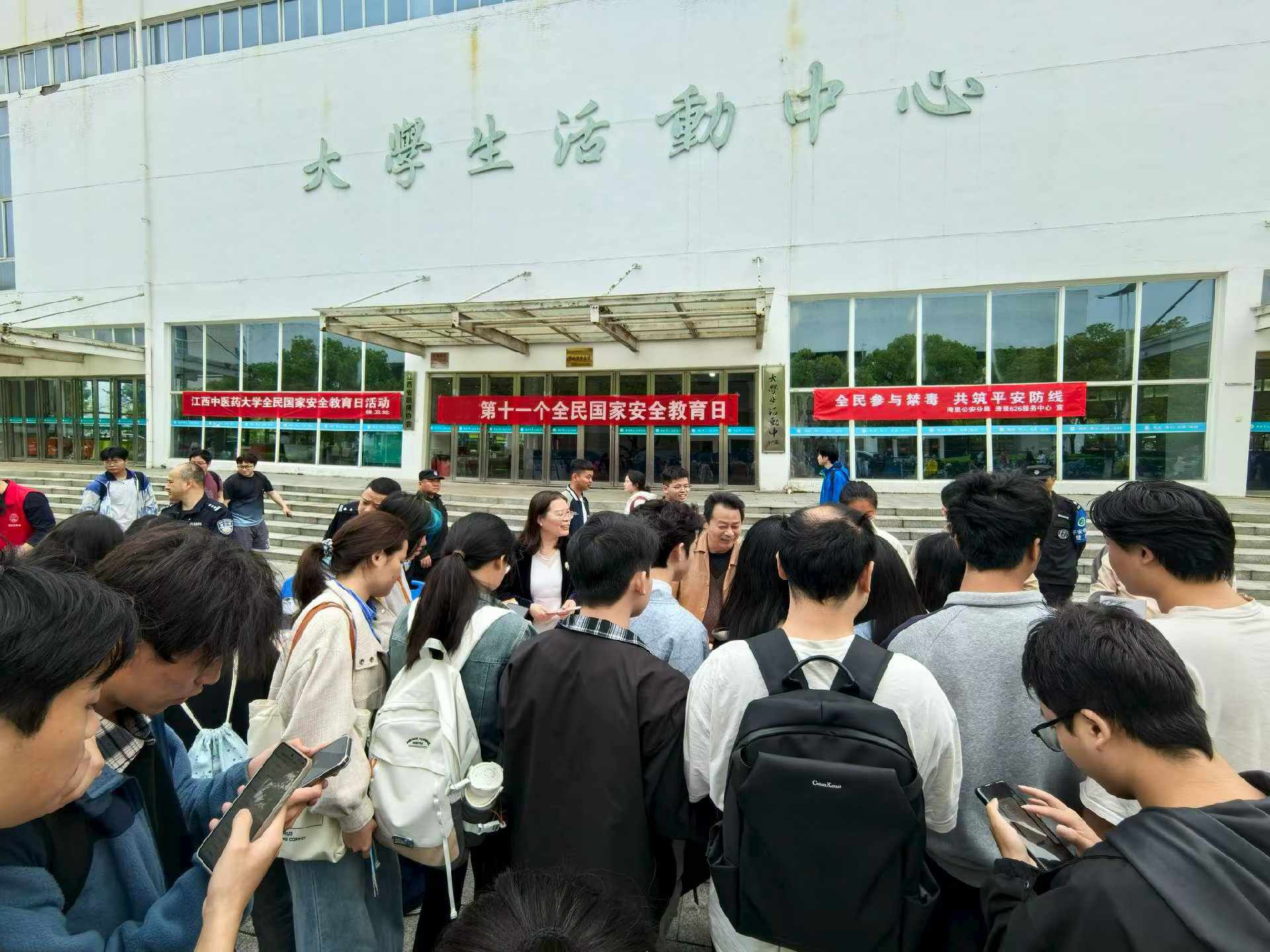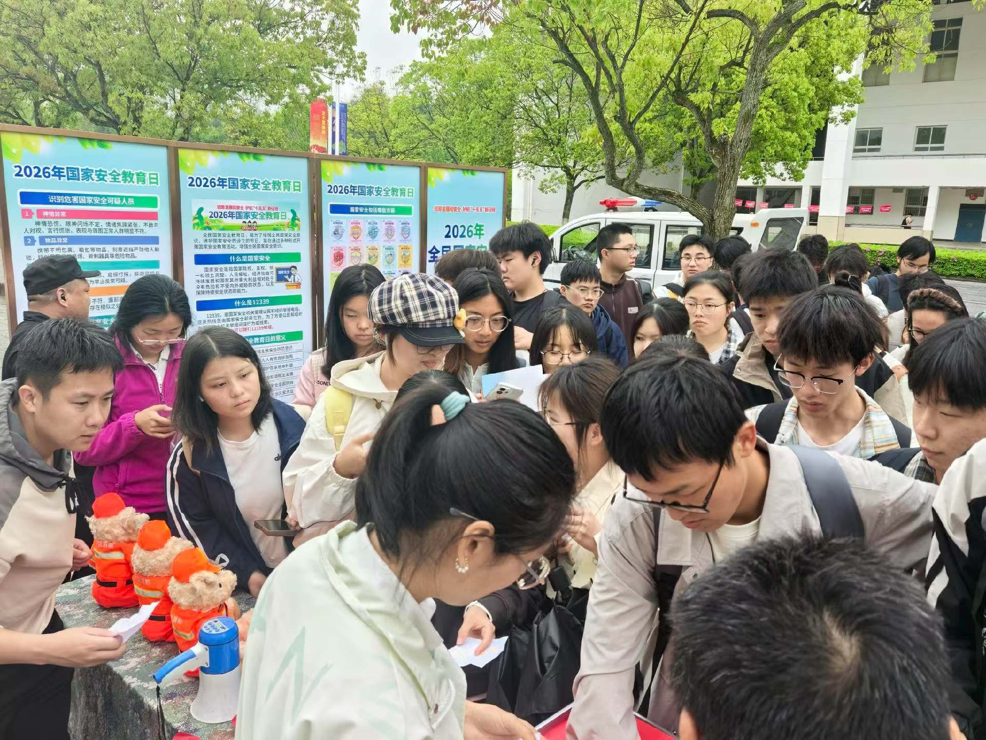 江中新闻网讯(通讯员 李春帅)在第11个全民国家安全教育日来临之际,为深入贯彻总体国家安全观,切实增强师生国家安全意识和素养,4月15日,我校联合湾里公安分局、湾里626服务中心,在大学生活动中心开展全民国家安全教育日系列宣传活动。活动现场设置安全知识竞答、禁毒主题宣讲两大板块,吸引了众多师生积极参与,现场气氛热烈。