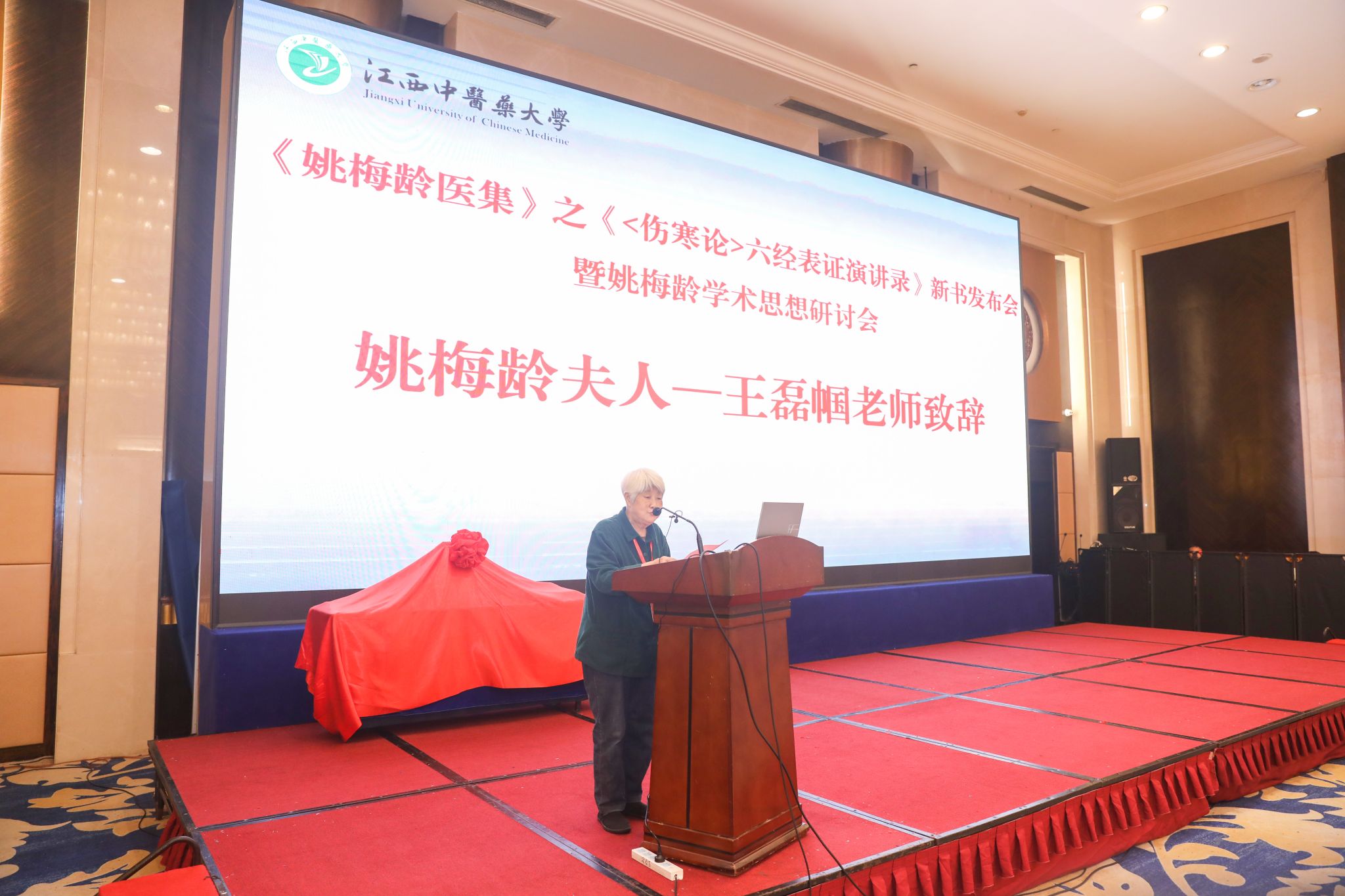 姚梅龄教授夫人王磊帼在发布会上对《〈伤寒论〉六经表证演讲录》的编撰、出版等进行了介绍,对编委会和出版社相关专家表示诚挚感谢。她作为姚梅龄教授一生最亲密的伴侣和学术事业最坚定的支持者,用真挚的话语讲述了姚老师的人格魅力与学术情怀,回顾了姚老师毕生致力于中医药事业、甘为人梯奖掖后学的感人故事,令在场同仁无不动容。
