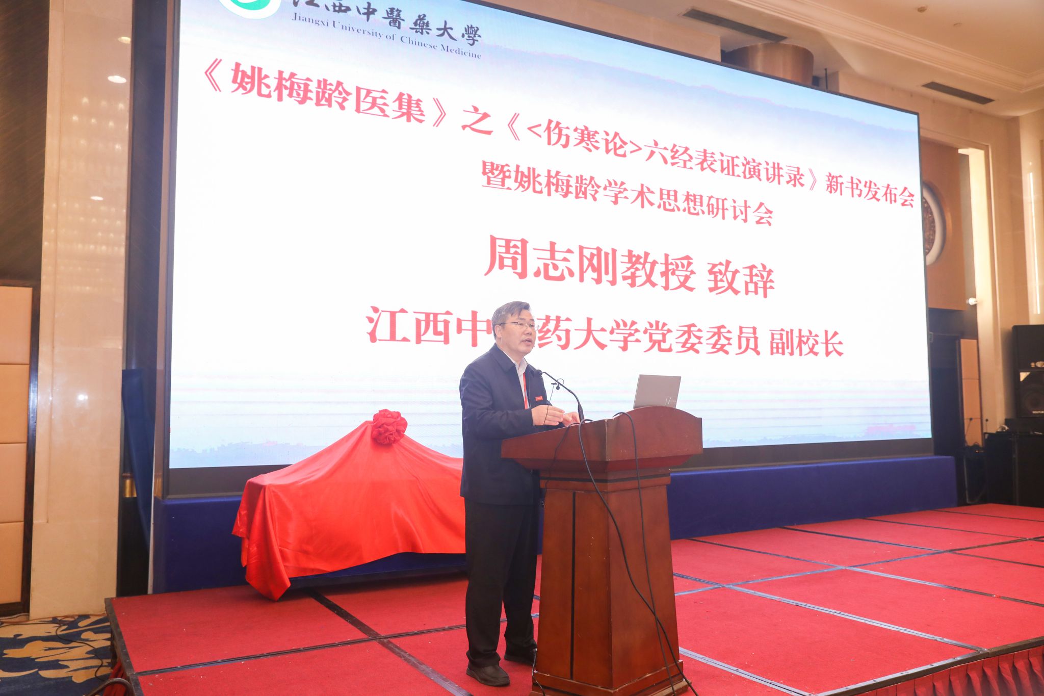 江中新闻网讯(通讯员 刘锋 记者 杨清跃)4月19日,由江西中医药大学主办的“求真之道,薪火相承”——《〈伤寒论〉六经表证演讲录》新书发布会暨姚梅龄学术思想研讨会在南昌举行。国医大师伍炳彩,学校党委委员、副校长周志刚,姚梅龄教授夫人王磊帼,学校党委委员、岐黄国医书院党委书记聂国林、《姚梅龄医集》执行主编章文春出席会议,学校科研处、岐黄国医书院、图书馆相关负责人,《姚梅龄医集》编委以及全国各地中医同道350余人共同见证新书发布。