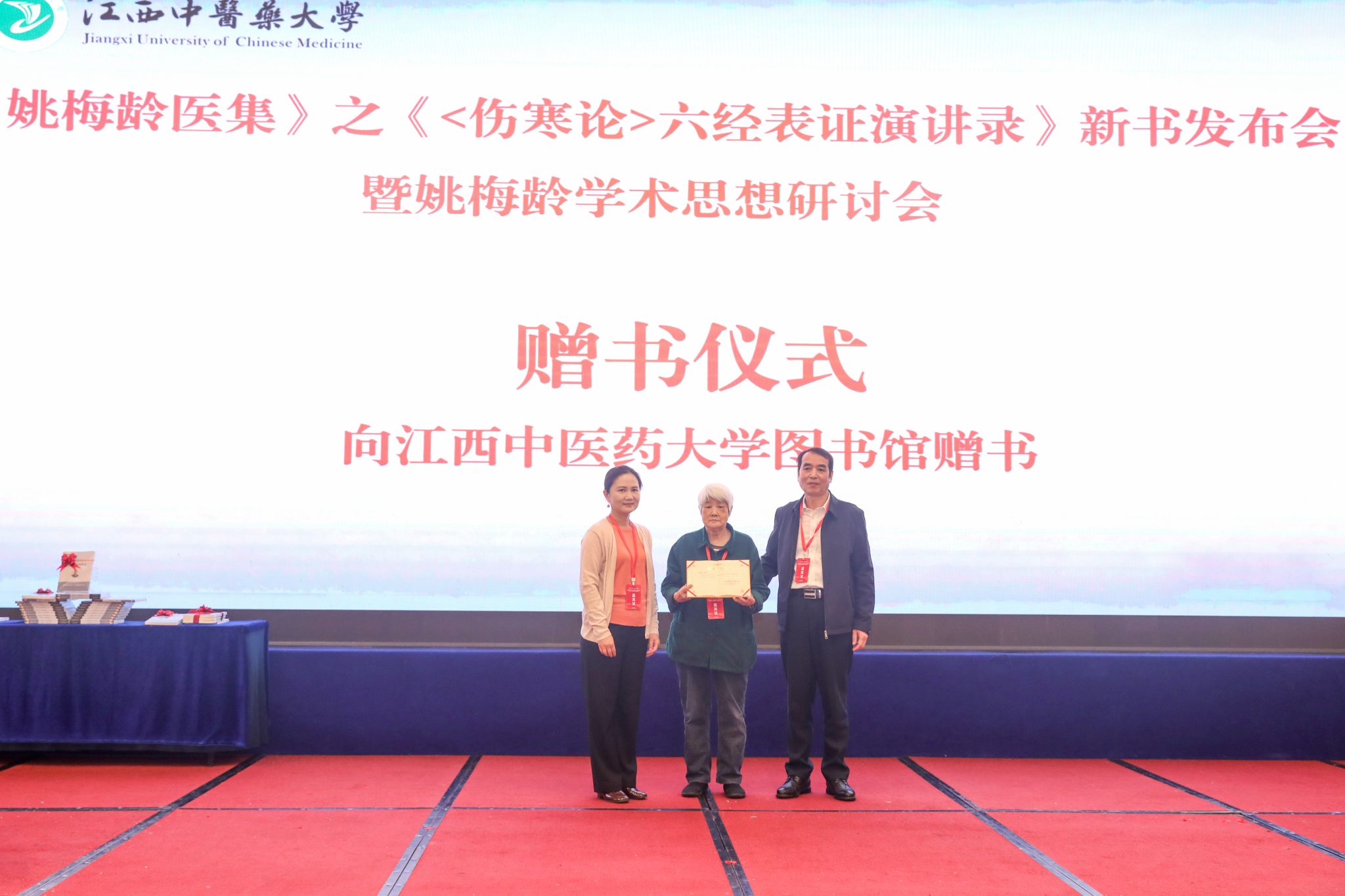 会议举行了新书揭幕仪式,周志刚教授、王磊帼老师、章文春教授共同为新书揭幕;举行了新书捐赠仪式,王磊帼老师、章文春教授向江西中医药大学图书馆、岐黄国医书院及书院优秀学子代表赠书,推动姚梅龄教授学术思想惠及师生、启迪后学。
