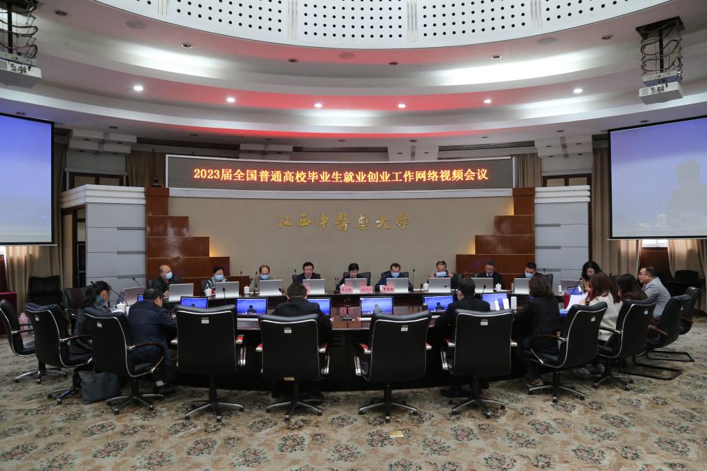 江中新闻网讯(通讯员 曹森)11月15日下午,学校在行政楼多功能会议室组织参加2023届全国普通高校毕业生就业创业工作网络视频会议。学校党委副书记、校长朱卫丰,党委副书记章德林,党委委员、副校长严小军参加会议。招就处、研究生院、科技学院等单位负责人,相关学院党政负责人,就业工作分管领导,全体就业干事和毕业班辅导员参会。