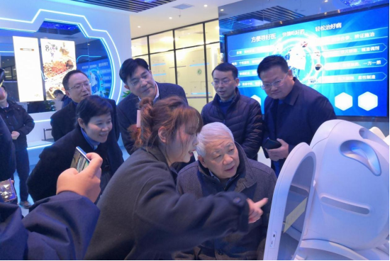 丁健一行认真听取了国创中心建设与规划方案,详细了解了国创中心科技创新、成果转化等相关情况,对国创中心的建设和研发的产品给予了充分肯定,并现场亲身体验了“智能四诊仪”。