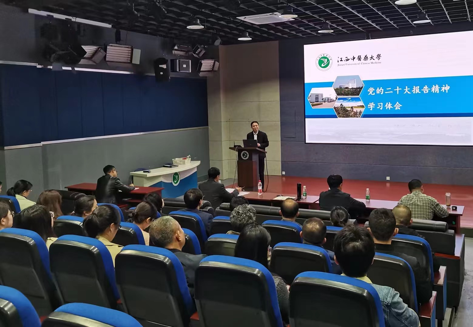 江中新闻网讯(通讯员 李志红)3月9日下午,学校党委委员、副校长朱根华到直属机关第五党支部宣讲党的二十大精神,支部全体党员干部职工参加宣讲会。