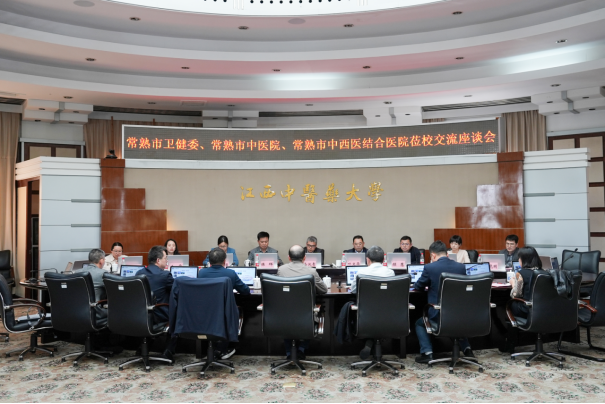 江中新闻网讯(通讯员 罗国顺)3月14日—15日,常熟市卫健委、常熟市中医院、常熟市中西医结合医院等一行9人来我校调研交流。校长朱卫丰接待了来访嘉宾,副校长杜建强出席并主持交流座谈会。学校教务处、科研处、研究生院、人文学院、继续教育学院、培训学院等部门负责人及相关人员参加座谈。
