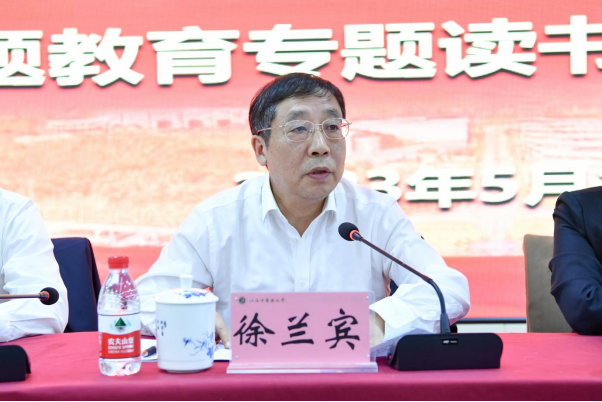 徐兰宾强调,要始终坚持以习近平新时代中国特色社会主义思想武装头脑、指导实践、推动工作,把学习成果转化为坚定理想信念的思想基础、永葆共产党人政治本色的实际行动、推动学校高质量发展的强大动力、办好民生实事的有力举措。在“学思想”中铸就政治忠诚,领导干部发挥“关键少数”作用,师生党员以此次主题教育为契机全面加强理论学习;在“强党性”中改进工作作风,不断加强政治锻造,永葆政治本色,增强纪律意识、规矩意识,努力营造风清气正的政治生态和干事创业的良好氛围;在“重实践”中推动事业发展,紧紧围绕高质量发展这一首要任务,坚持学思用贯通、知信行统一,全力抓好一流学科建设、审核评估、巡视整改等重点工作,以推动高质量发展的新成效检验主题教育成果;在“建新功”中站稳人民立场,牢固树立以人民为中心的发展思想,扎实办好民生实事,聚焦师生群众反映最强烈、期盼最集中、关切最紧迫的问题,让主题教育惠民生、暖民心、顺民意,切实增强师生的获得感、幸福感、安全感。