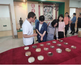 朱卫丰一行先后实地参观了安徽中医药大学中药材性状辨识馆、新安医学文化馆等展馆,深入了解安徽中医药大学在人才培养方面的建设特色。参观结束后,朱卫丰一行与安徽中医药大学校长彭代银,副校长许钒及相关职能部门负责人等进行了座谈。