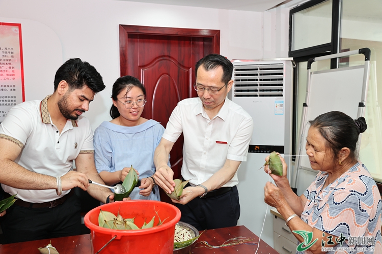 江中新闻网讯(记者 李颖)端午近,粽飘香。为进一步弘扬中华民族优秀传统文化,营造浓厚的节日氛围,6月20日上午,我校党委副书记章德林赴学校文明共建社区——湾里文明北路新时代文明实践站,与我校留学生、社区群众一同学党史、诵家书、听红歌、包粽子、送祝福……以丰富多彩的“我们的节日·端午”主题活动,迎接传统佳节的到来。学校党委委员、宣传部部长徐道富陪同。