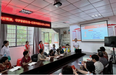 “心灵乐梦团”实践队在新时代文明实践中心樟树市淦阳街道下墎社区面向居民开展以“学好宪法、民法典,守护你我健康生活”为主题的法律知识课堂,为社区居民讲解宪法、民法典知识,并发放宪法、民法典宣传材料共计80余份,同居民“零距离”开展法律服务,极大提升了社区居民的法律意识和法治观念,获得居民的一致好评。