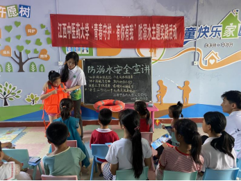 在樟树市永泰镇车埠村童心港湾建设点,“心灵乐梦团”实践队设立多彩课堂,助力留守儿童健康快乐成长。面向留守儿童开展防溺水安全知识宣讲、《我和我的祖国》音乐课堂、党旗制作手工课,并向留守儿童发放中医药宣传册,讲解中药的用处,在孩子心中种下热爱中医药的种子,促进留守儿童德智体美劳全面发展。最后,实践队向留守儿童捐赠了学习物资。