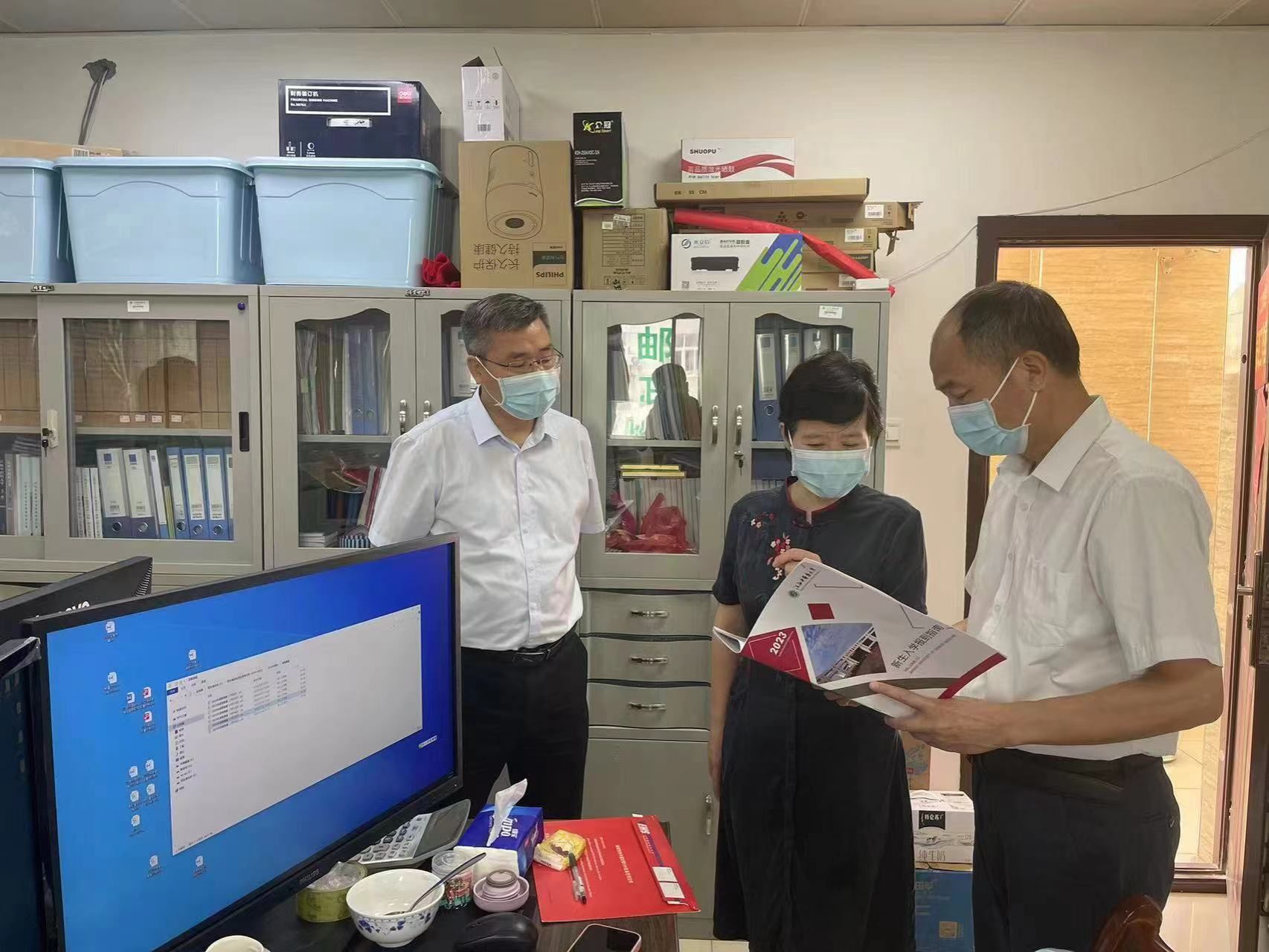 江中新闻网讯 7月16日,校长朱卫丰、副校长周志刚到招生就业处看望慰问暑期工作在招生就业一线的工作人员,认真听取了招生就业处负责同志关于招生录取和毕业生就业工作的详细汇报。