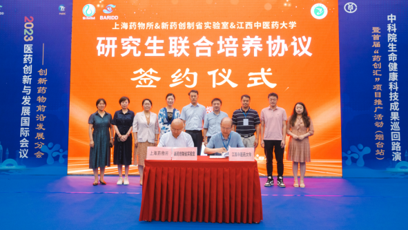 会中,杜建强代表学校与中国科学院上海药物研究所中科环渤海(烟台)药物高等研究院签署了研究生联合培养协议。学校将依托中国科学院上海药物研究所的师资力量和学科优势,以“科教融合”为特色培养机制,以教学合作为纽带,加强校企、导师间深度合作,共建共享、共同发展、共同培养药学和医药产业领域的高层次创新创业人才,推进学校成果转化,助推学校高质量发展。中国科学院上海药物研究所创建于1932年,是我国历史最悠久的综合性创新药物研究机构。现有两院院士4人,杰青等国家级高层次人才近200余人;拥有4个国家级研究中心,6个研究室,11个技术平台研究中心。