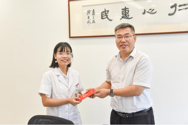 在慰问现场,周志刚亲切关心黄晓霞同学的学习、生活情况,并代表学校为她的英勇救人事迹“点赞”。他表示,黄晓霞同学在火车上英勇救人事迹为全校师生树立了学习的典模,也得到了社会各界的赞扬和肯定;勉励黄晓霞同学要谨记“健康所系,性命相托”医学生誓言,争做新时代好青年,为中医药事业传承创新发展持续奋斗,为弘扬社会正气、传递社会正能量做出更多的贡献。