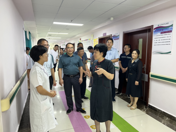 朱卫丰一行先后实地考察了住院部消化科、儿童康复科,了解科室工作进展情况和专科建设发展情况并向患者家属问好。