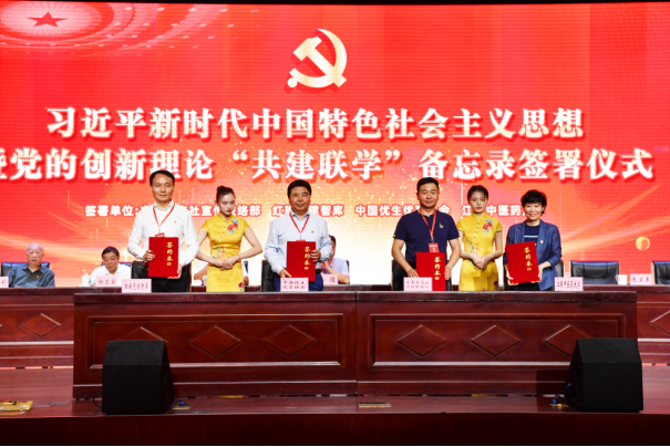 求是杂志社宣传联络部、中国优生优育协会、红旗党建智库和学校共同签署了习近平新时代中国特色社会主义思想暨党的创新理论“共建联学”合作备忘录
