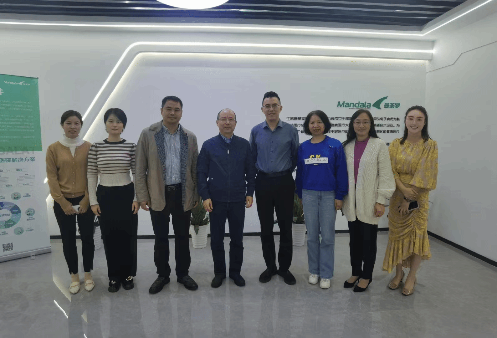 参访过程中,杜建强一行在江苏曼荼罗软件有限公司总经理叶凯的陪同下,参观了全数字化智慧医疗展示中心和荣誉大厅,并观看了企业宣传片,详细了解曼荼罗软件有限公司发展历程与业务形态。