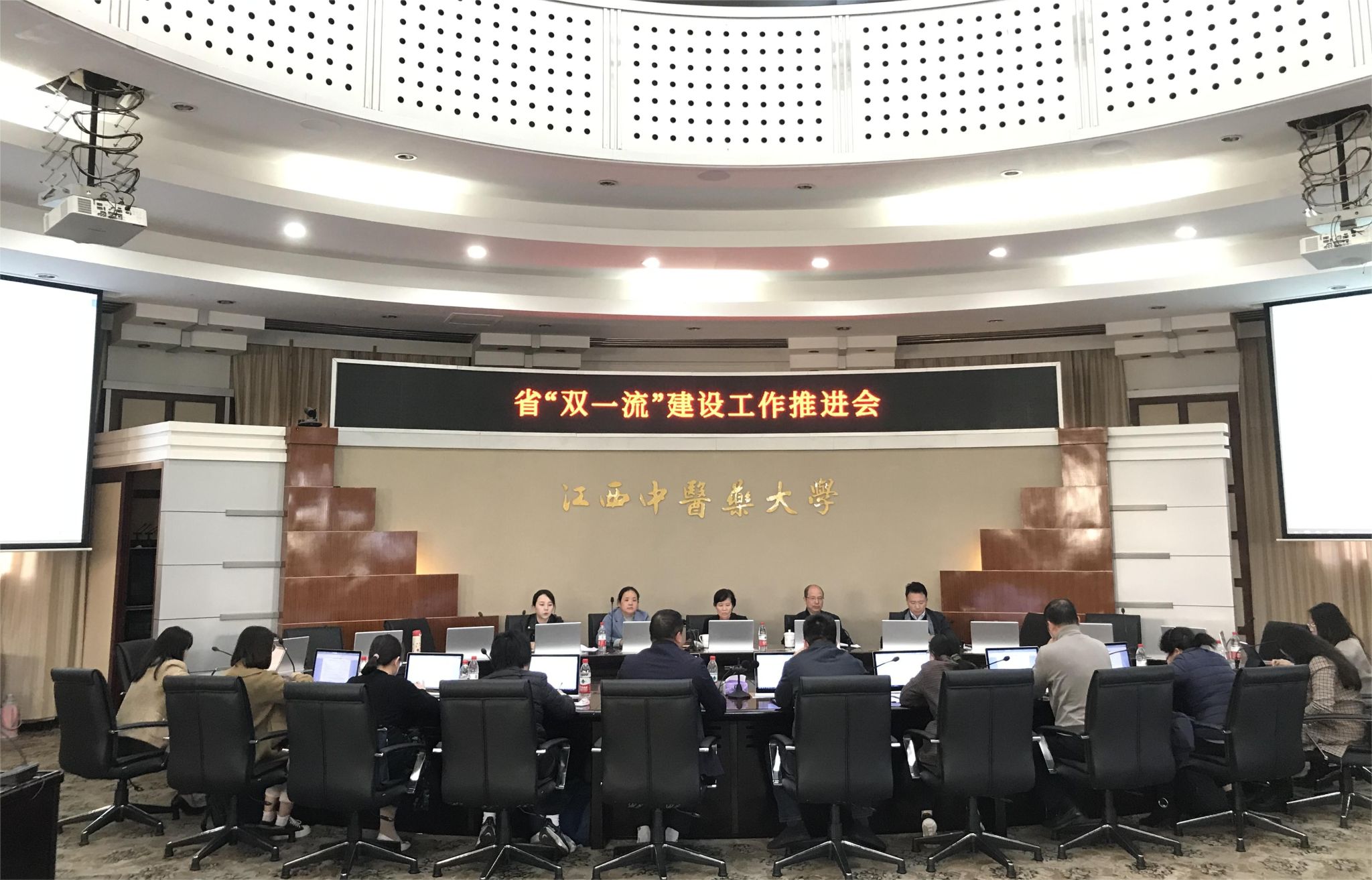 江中新闻网讯(通讯员 李艳华)11月21日下午,学校在湾里校区行政楼二楼多功能会议厅召开省“双一流”建设工作推进会。学校党委副书记、校长朱卫丰,副校长杜建强出席会议,学科办、人事处、科研处、财务处、国合处、研究生院、药学院、附属医院等部门负责人及学科秘书参加会议,会议由杜建强主持。