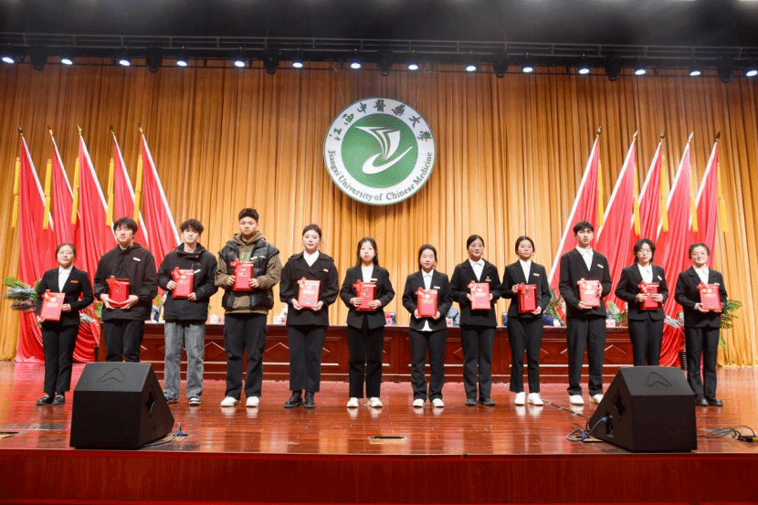 表彰大会在庄严的国歌声中拉开帷幕。会议宣读了《关于表彰2022-2023学年“三好学生”“优秀学生骨干”和“先进班集体”的决定》《关于表彰江西中医药大学2023年“最美大学生”的决定》,学校领导为“先进集体”“优秀个人”代表颁奖,“先进集体”代表、“优秀个人”代表先后发言。