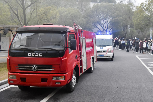 本次演练模拟第三栋教学楼发生重大火情,楼栋保安员发现险情后立即向校园110指挥中心报警,值班员接警后立刻上报火情,学校及时启动应急疏散预案,教室内广播马上响起疏散撤离通知,各课堂内学生在任课老师的引导下,按照“弯腰、低头、捂口鼻、摸墙走”等火场逃生要领,沿疏散标识迅速转移至安全地带。校园119、校园120第一时间赴现场施救,心理救助、后勤保障等工作组也随即赶赴现场。