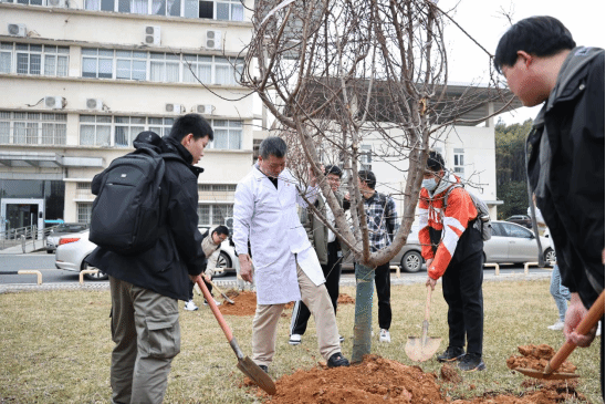 劳动实践中,朱卫丰与同学们一同植树,还向学生讲解了杏树的品种、杏的药用功效、杏与医术医德的关系等知识,讲述了名医董奉仁心济世、普惠济民的故事,教育同学们不仅要刻苦钻研专业知识,精于医药,更要以董奉为榜样,涵养高尚医德,诚信惠民。