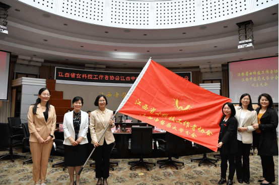 校党委副书记、校长朱卫丰为省女科协江西中医药大学分会授旗