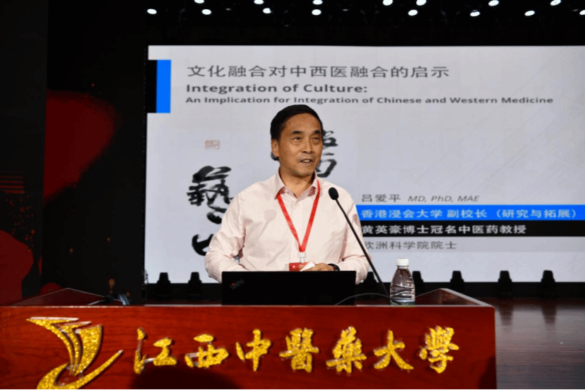 香港浸会大学副校长吕爱平作题为《文化融合对中西医融合的启示》的报告,回顾了我国中西医融合的发展历史,系统阐释如何构建具有融合中西医理论特点的新医药学体系,通过体制创新、人才培养、宣传普及等多种方式促进学科融合,推动我国医学事业高质量发展。