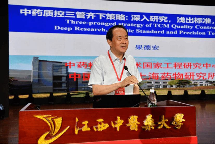 中国科学院上海药物研究所研究员果德安以《中药质控三管齐下策略—深入研究、浅出标准、精准检测》为题,系统全面梳理了中药发展的现状,并介绍他率领团队研发的中药 “化学分析-体内代谢分析-生物学分析”三位一体的系统分析方法,提出了“深入研究、浅出标准、精准建测”的研究思路。
