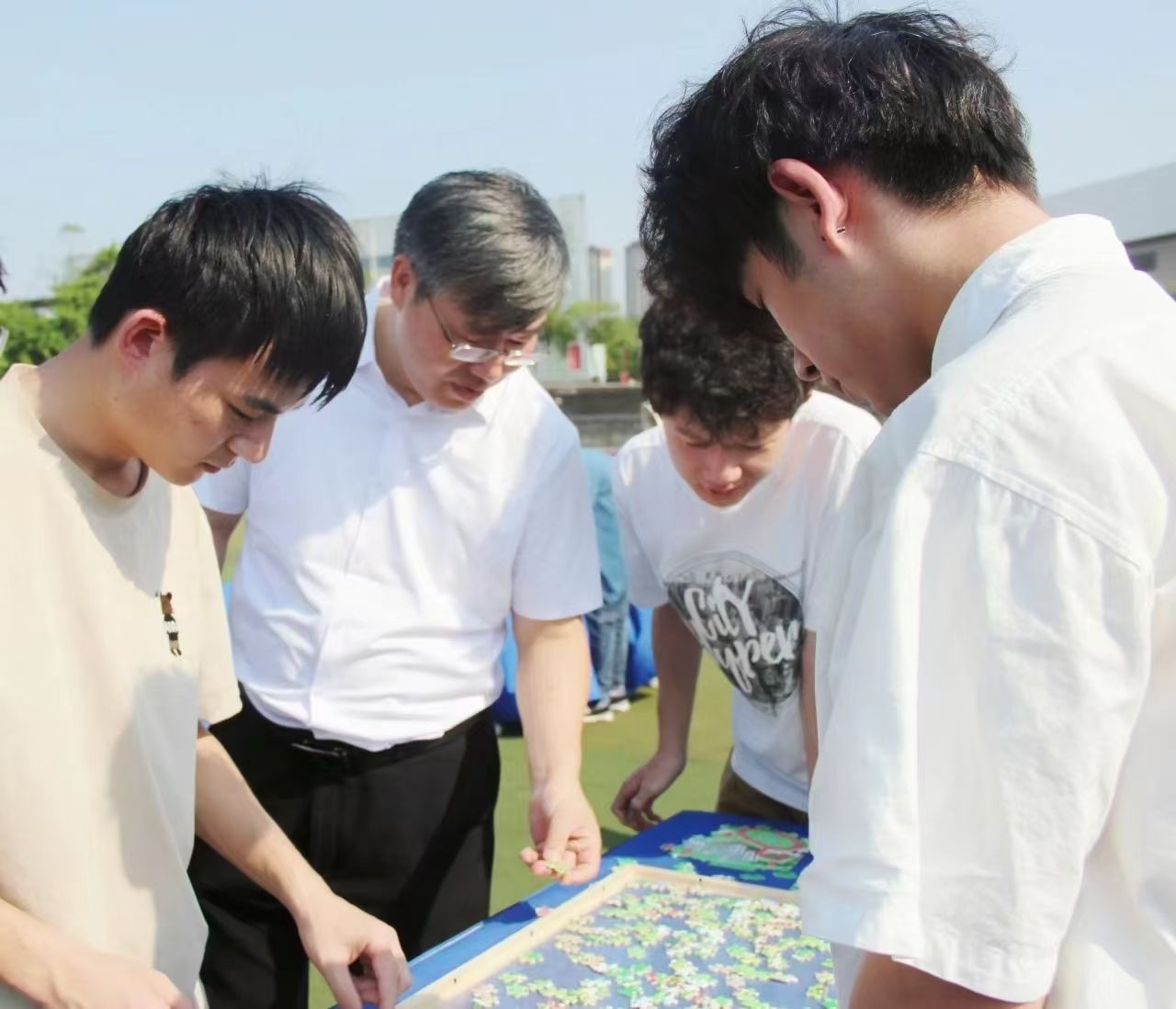 江中新闻网讯(通讯员 田川 张海钰)芳华流转六五载,弦歌不辍共潮鸣。为营造我校六十五周年的校庆氛围,展现江中医学子朝气蓬勃的青春风采,5月17日下午,校学生会在湾里校区举办了以“江中在我心,爱‘拼’才会赢”为主题的拼图大赛活动,来自全校近1000名同学齐聚活动现场,我校党委委员、副校长周志刚莅临本次活动现场。