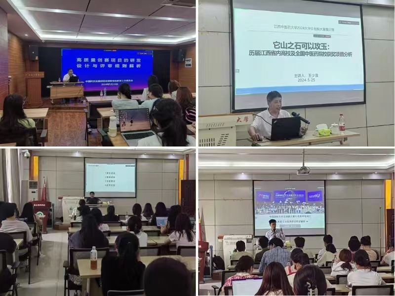 集训营邀请了一批国内知名、经验丰富的专家担任主讲嘉宾,围绕中国国际大学生创新大赛(2024)政策解读、优势项目特征与备赛技巧、江西省高校和全国中医药院校历届大赛总决赛获奖项目分析、以赛促转——高校生命健康科技成果转化新路径等专题,通过线上线下相结合的方式对学员进行了有针对性的指导培训。专家们建议参赛师生要牢记大赛目标,吃透比赛规则,聚焦创新创业教育实践,提前做好项目挖掘、培育,真正实现以赛促教、以赛促学、以赛促创。