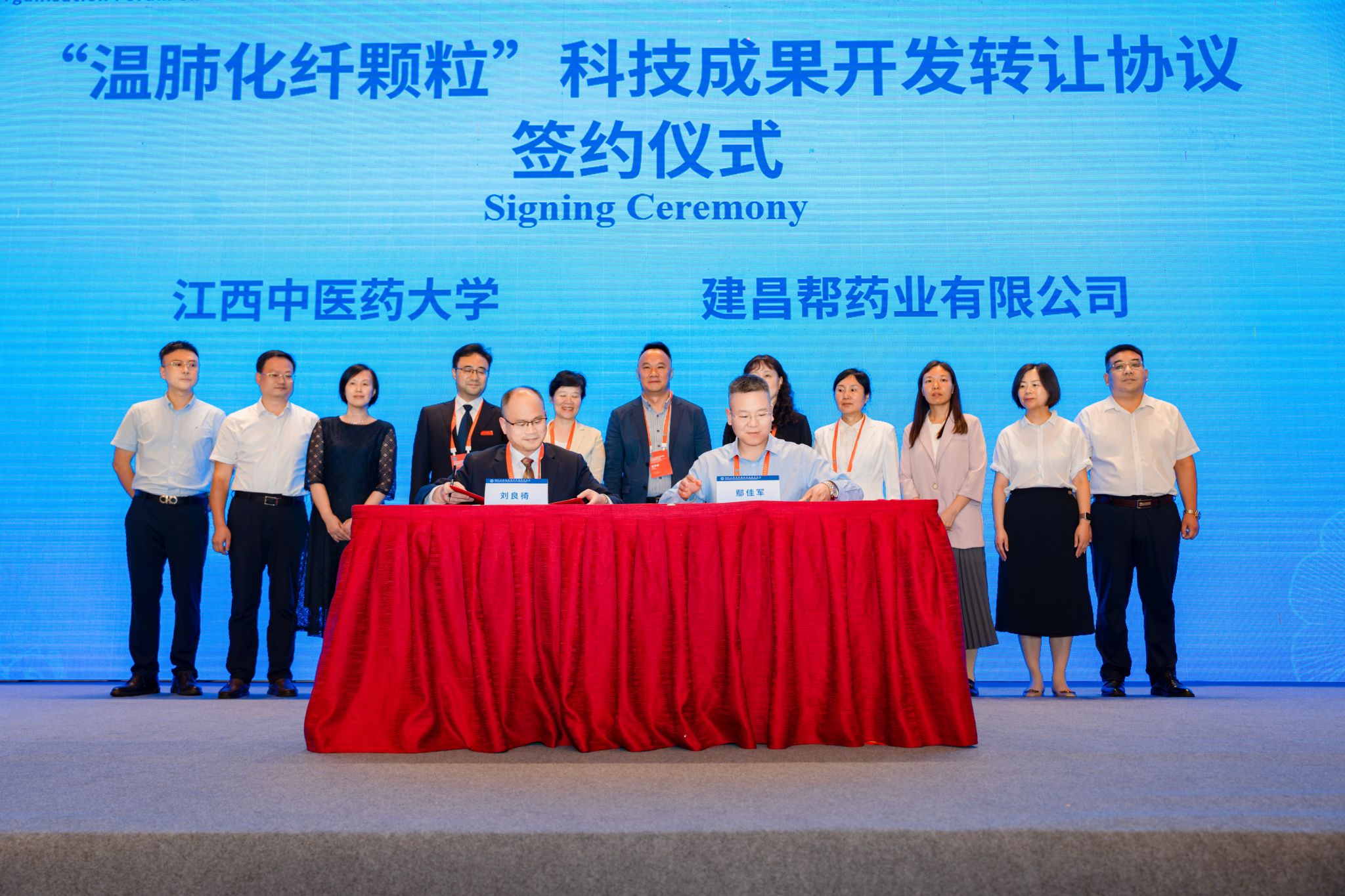 签约仪式上,校长朱卫丰与创盈集团董事长易斌签署战略合作框架协议,附属医院党委副书记、院长刘良徛与创盈集团运营协同总经理兼建昌帮药业总经理鄢佳军签署“温肺化纤颗粒”科技成果开发转让协议,转让金额达到3000万元。协议的签署标志着学校与创盈集团的合作拉开新的序幕。