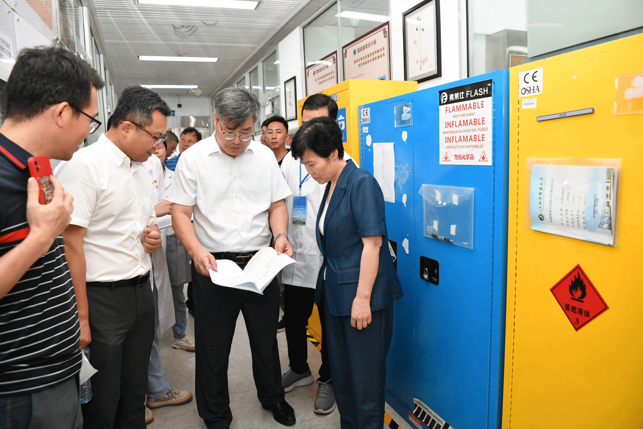 朱卫丰一行先后来到实验大楼、食堂等重点场所,围绕实验室安全、危化品管控、消防安全、水电气管理、餐饮卫生等重点领域进行全面检查,详细了解各相关部门的安全责任落实情况。