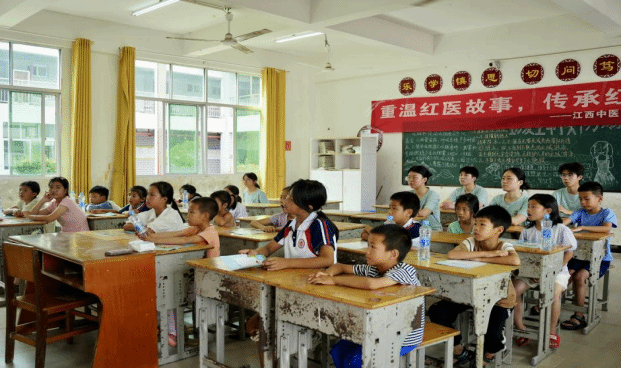 志愿者们用通俗易懂的语言带孩子们重温了土地革命时期,湘赣苏区医务工作者们在医疗条件艰苦的环境下,利用中医中药资源为红军伤病员提供及时有效的医疗服务的故事,宣传中医药在革命时期发挥的独特作用和无私奉献的红医精神,在孩子们心里种下投身中医药事业的种子。孩子们听得聚精会神、兴致盎然。有好几位孩子告诉志愿者: “中医药太神奇了,我长大了也要学中医,用我的医术治病救人”。