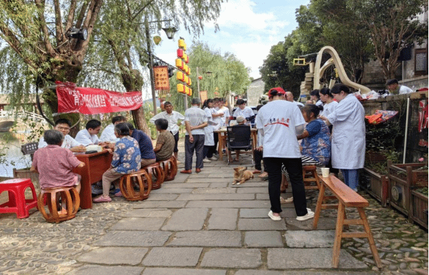 活动现场,志愿者还制作了酸梅汤让村民品尝体验。这种传统食疗产品受到当地居民追捧,一碗接一碗,每个人脸上都洋溢着幸福的笑容。