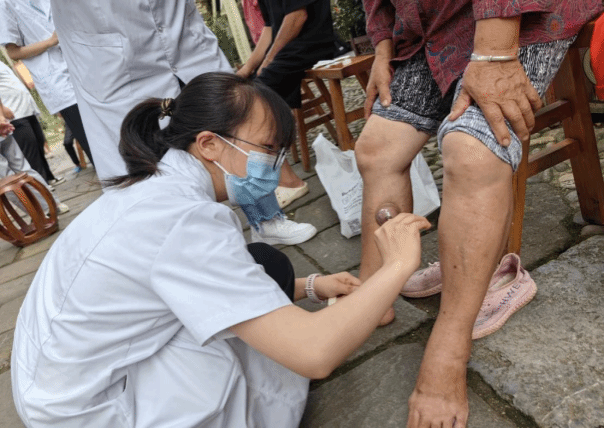医疗保健组在现场开展刮痧、拔罐、艾灸、耳穴压豆等中医外治法,普及中医“治未病”的理念,并教授了一些简单实用的自我保健方法,让村民亲身体验到中医药的独特魅力。