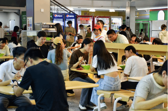 学校食堂是最有烟火气的地方。食堂焕然一新,食堂窗口又推出了不少新菜式。喧喧嚷嚷的人群,香气四溢的餐厅,学子们三两成群,品尝的每一道佳肴都是能量的满载,不断为新学期蓄能。