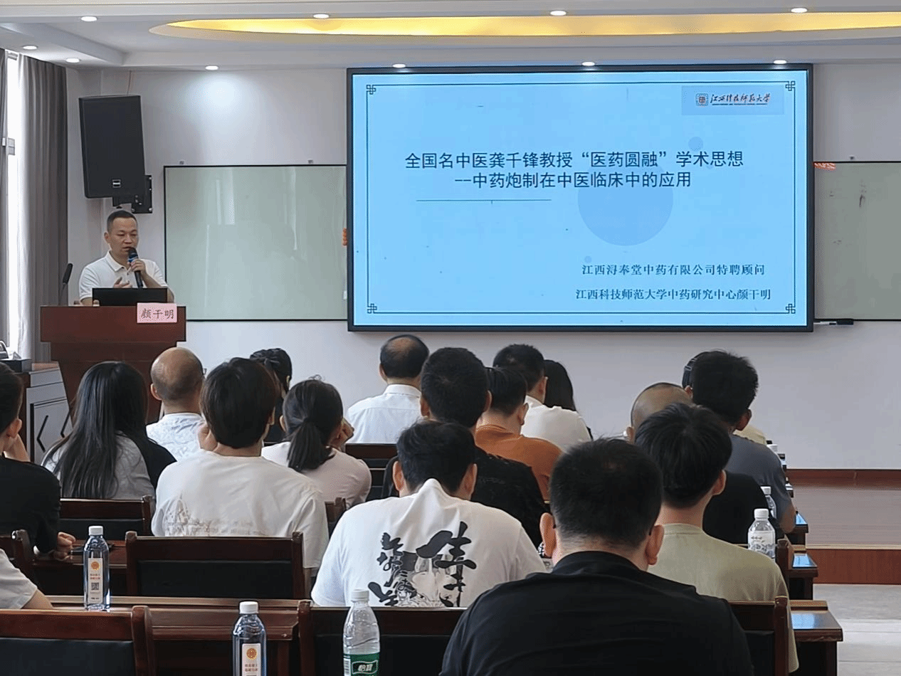培训班邀请了第二届全国名中医、江西中医药大学龚千锋教授,第十二届药典委员会委员、中国中医科学院中药研究所炮制中心主任张村研究员,江西科技师范大学药学院中药传承和创新研究中心颜干明主任、徐宁宁副研究员,江西中医药大学张安然副教授,九江学院曲伟红副教授,江西浔奉堂中药有限公司质量控制部严军等专家分别作《中药炮制与临床疗效》《经典名方与中药炮制》《全国名中医龚千锋教授“医药圆融”学术思想传承--基于中医临床应用,思考中药炮制传承和创新》《全国名中医龚千锋教授“医药圆融”学术思想传承--基于中医临床实践,浅谈中药的取象比类》《岐黄星火:推动中医药文化贯穿国民教育始终的江西实践》《蜜炙中药入肺经机理研究》《中药饮片生产质量管理》专题讲座。